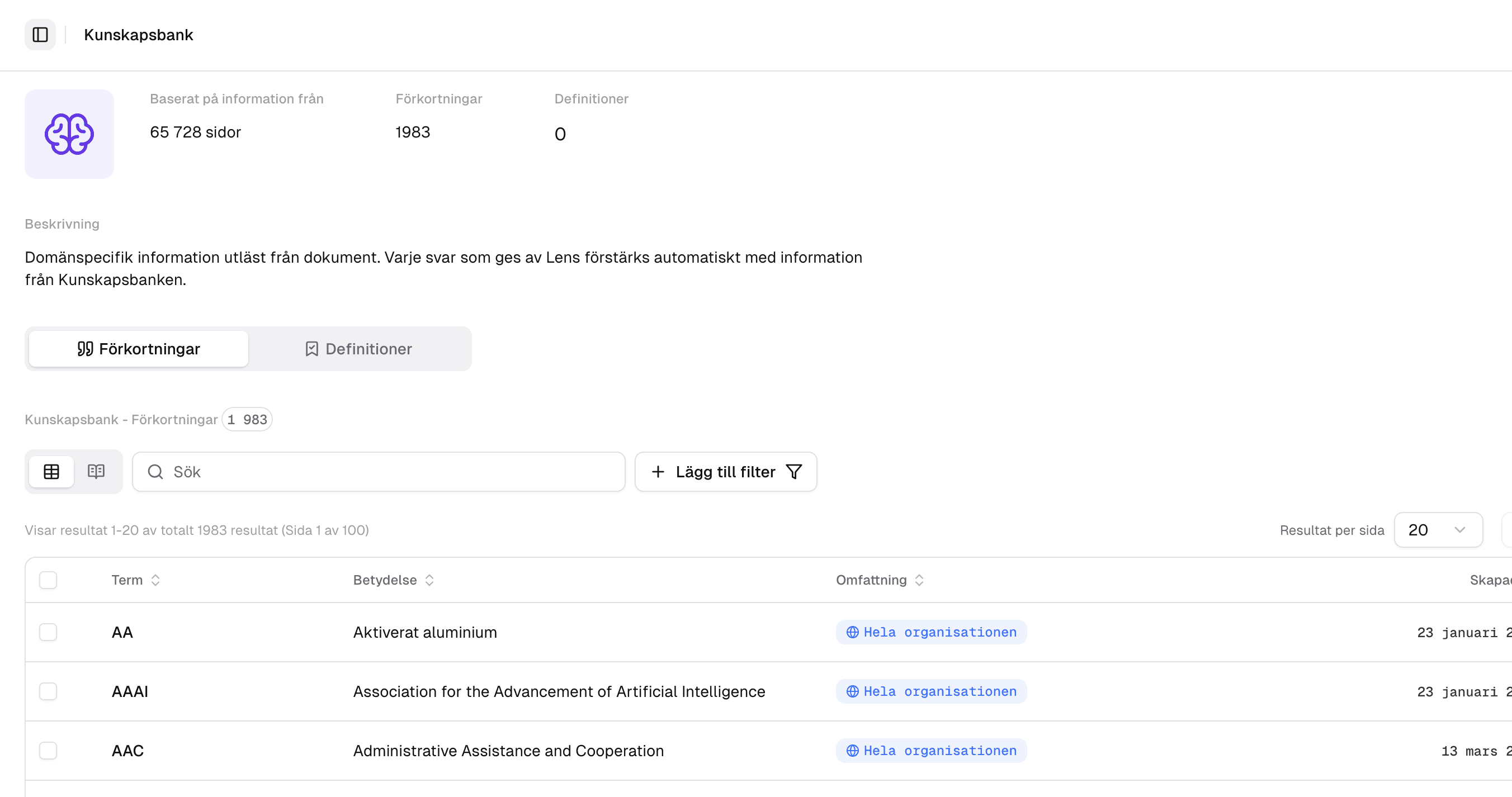 Lens automatically extracts acronyms and definitions from your documents to provide better answers grounded in your specific domain. Language models are per default not tuned to your domain or language - Lens fixes that.