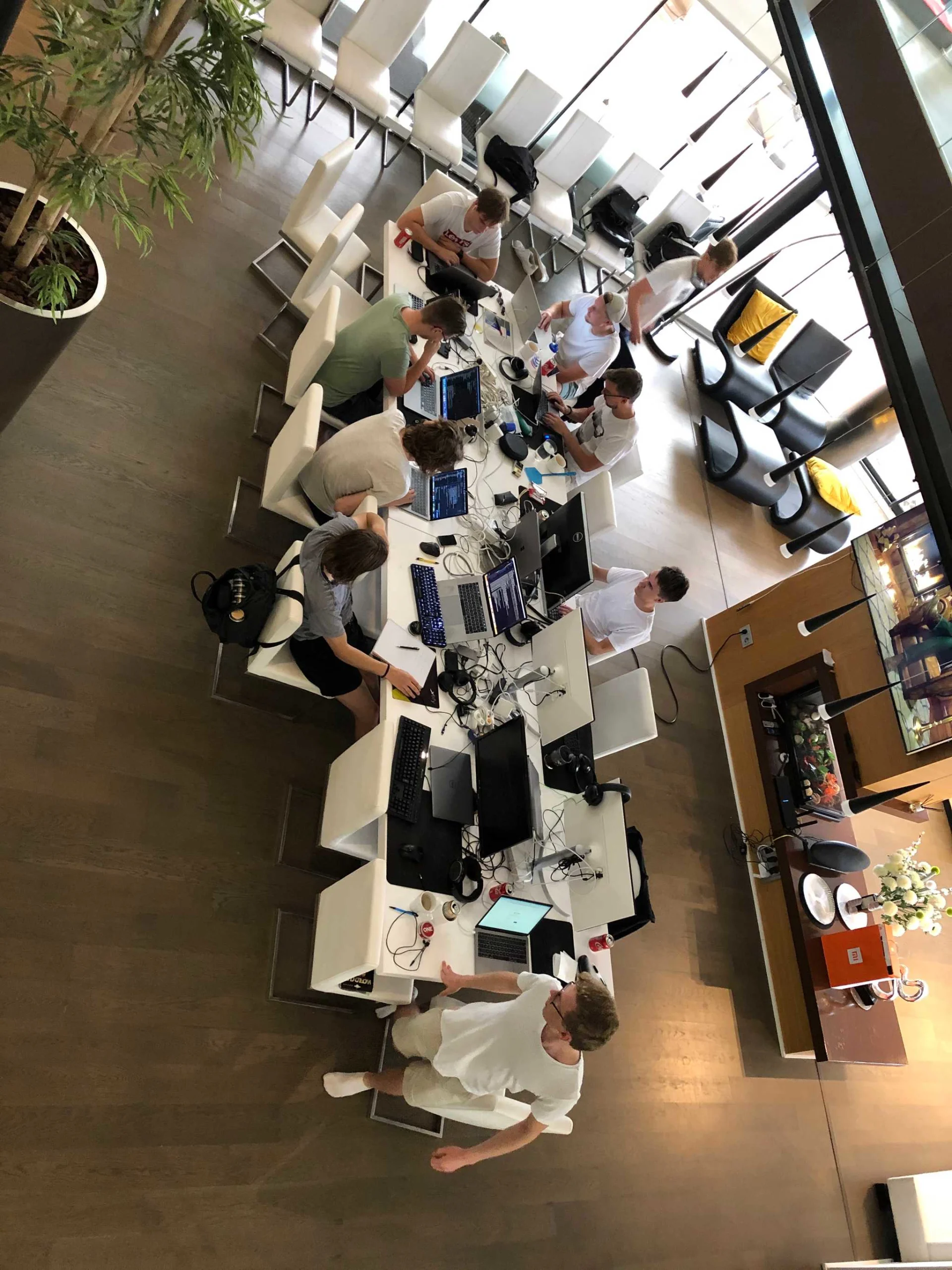 Coding for many hours straight is mentally exhausting - we as developers are well aware of the fact. To mitigate the effects of long sessions, we brought our own personal trainer to make sure we got enough exercise every day. This proved to be a good investment and the joint training sessions were appreciated by many participants.